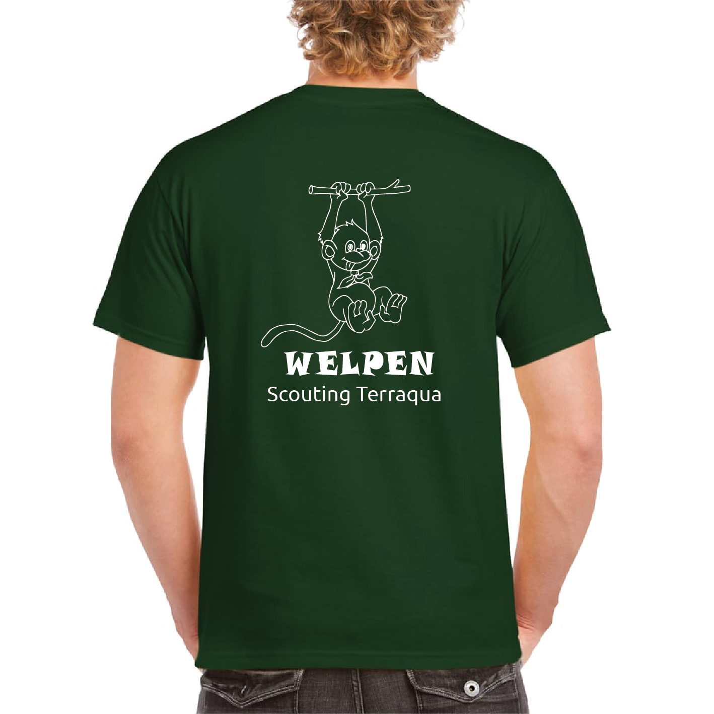 Achterzijde het Welpen logo en de linker borst het groepslogo