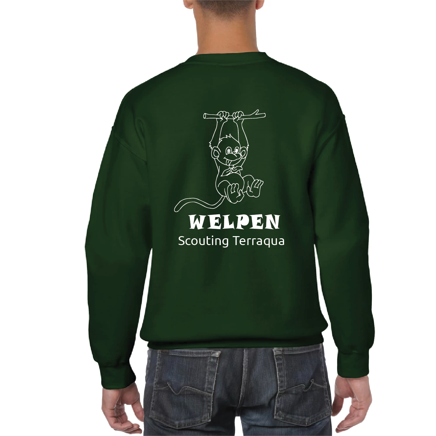 Achterzijde het Welpen logo en de linker borst het groepslogo.